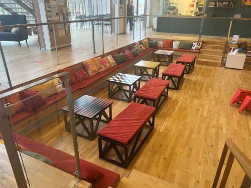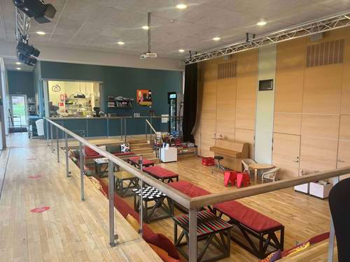 Der er plads til 30 personer i lokale 0.1 / Hullet, som er et åbent lokale i forbindelse med caféområdet. Lokalet ligger i stueplan i den nyere afdeling af huset.